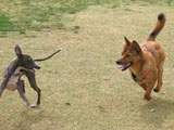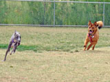 Tuesday, November 24th, 2009Shirley, Brandy and I went to Poway Dog Park this afternoon for Brandy to play with some of her friends. For some unknown reason Brandy was “snippy” at several of the dogs, which happens occasionally. Suddenly, someone pointed to Brandy and said she had blood on her. I quickly ran to her and found blood on her right front paw. Upon further inspection, I saw that she had a nail split with one piece going off at a 45° angle into the adjacent nail. She didn’t complain much when I picked her up and carried her to the car which was about a quarter mile or less away.