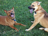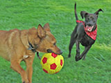 Picture: Brandy frequently steals Thumper’s soccer ball at Poway Dog Park. Then, they play tug-of-war.
