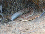 At this point we decided to return. I had strained my foot about a week earlier and I didn’t want to overuse it. On the way back I saw the rabbit alongside the trail and thought we’d interrupted a coyote kill. It wasn’t until I looked at the pictures that I realized that the snake was eating its kill, not shedding its skin.