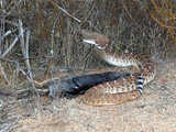 We then returned to Blue Sky Reserve and about half-way back I saw a small snake stretched out on the road. Brandy either didn’t see it or just ignored (not likely!) it. It was about three-eights inch in diameter and almost three (est) feet in length– a very skinny snake. I stepped around it and then it occurred to me that there might still be rattlesnakes around. I had expected that the snakes would not be active and felt comfortable hiking close to the brush along the trails. I’ll rethink that!